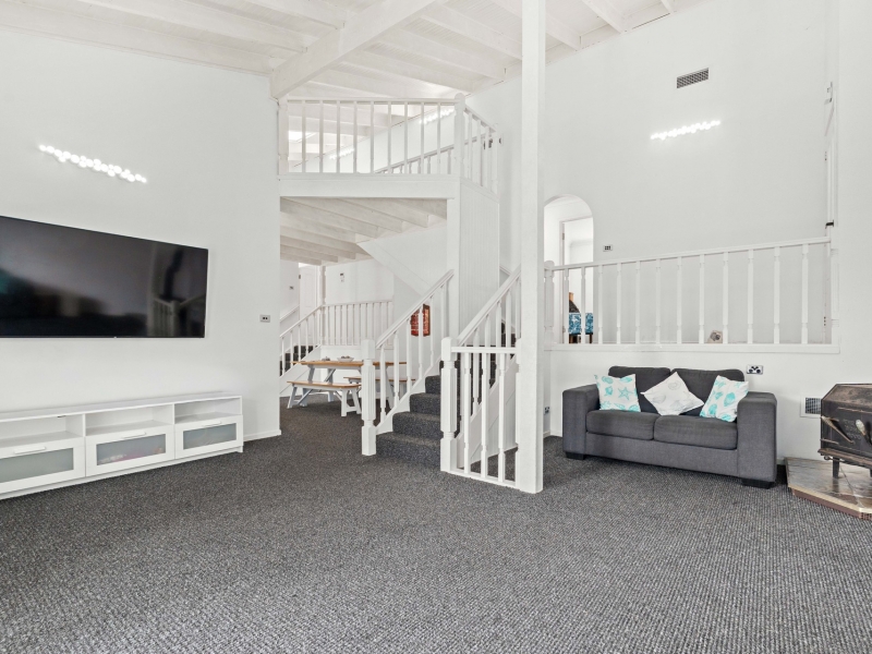 • Raked ceilings, with Air Conditioning, and a fireplace.